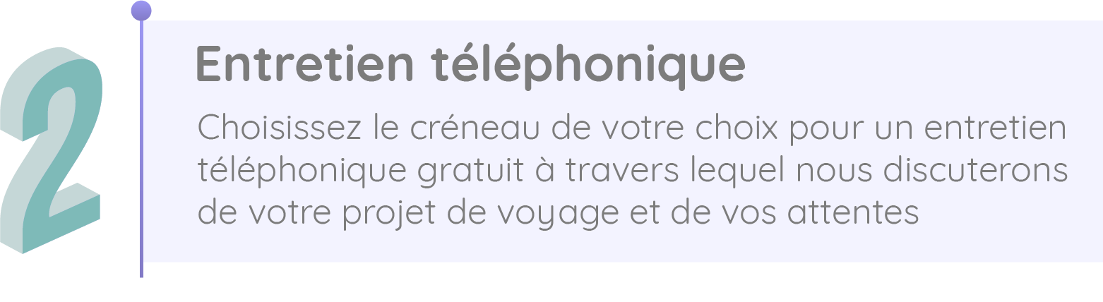 Pas de panique ! A travers mon service de travel planner, je suis à votre écoute et vous aide à gagner du temps sur l'organisation de vos voyages en effectuant toutes les recherches nécessaires à la préparation de vos vacances.